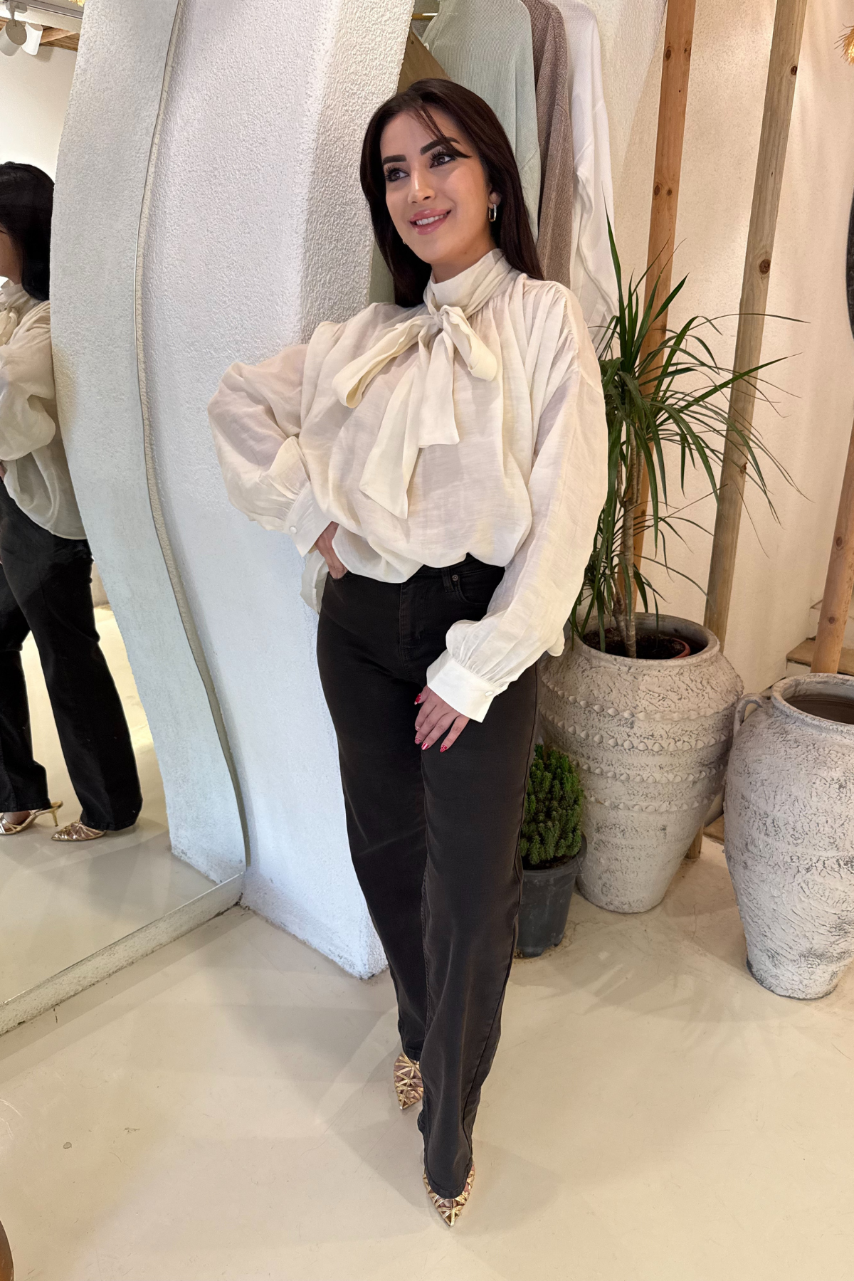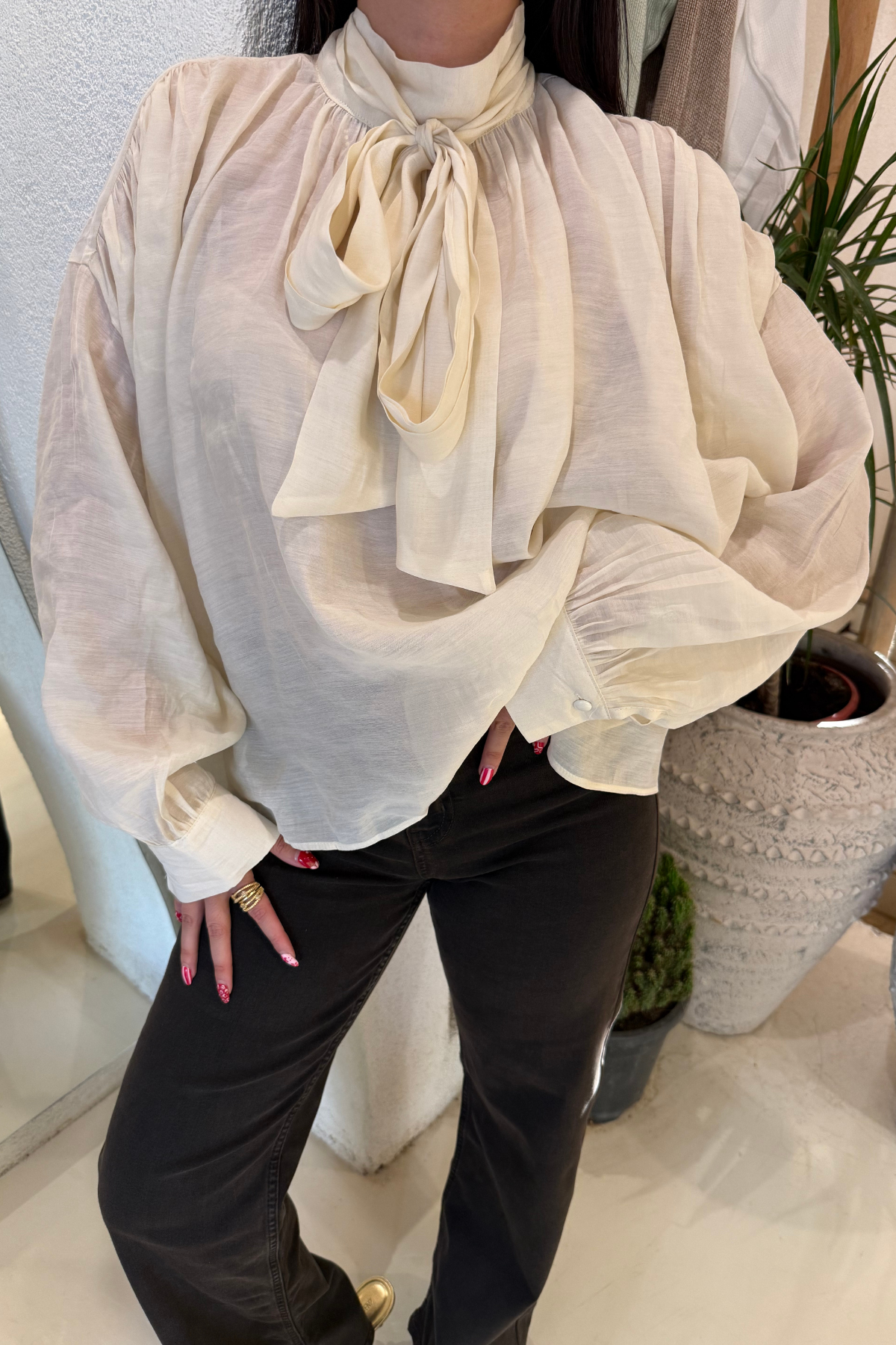 Fiyonk bağlama detaylı bluz