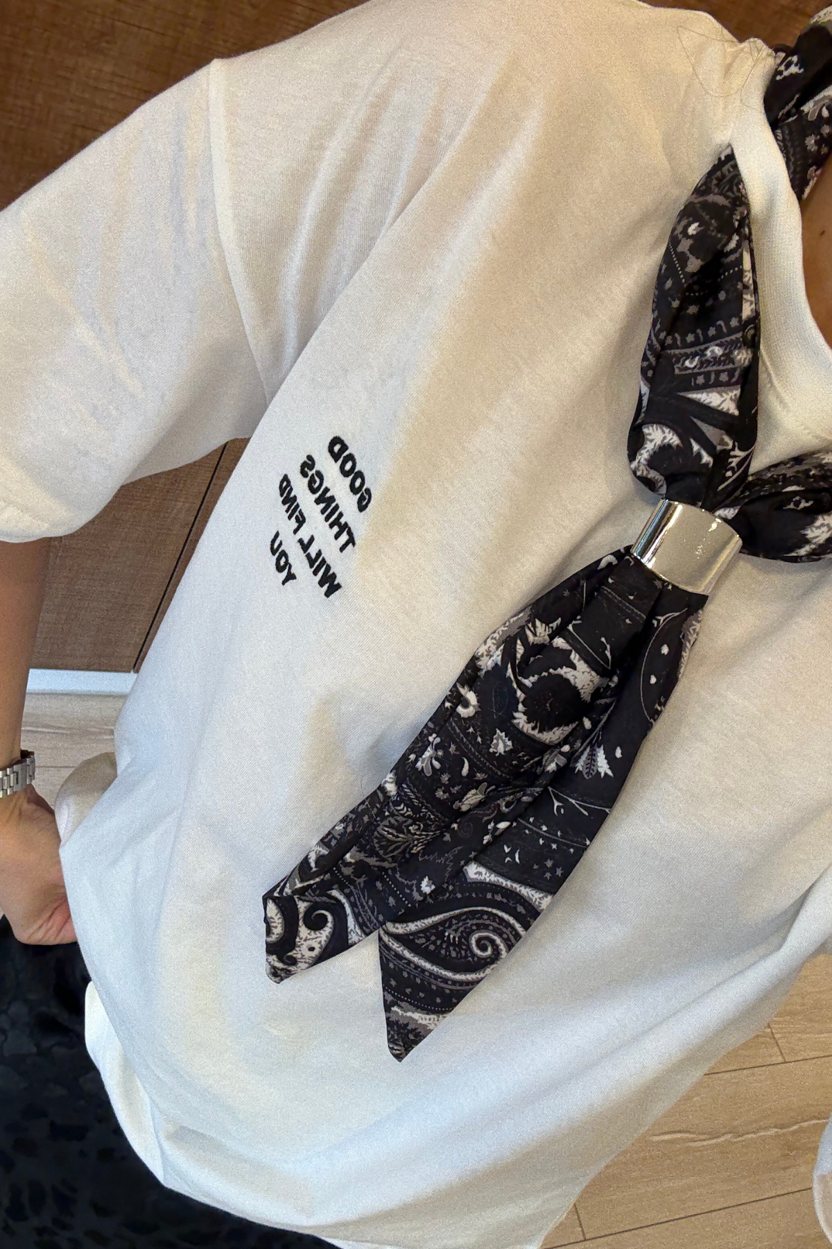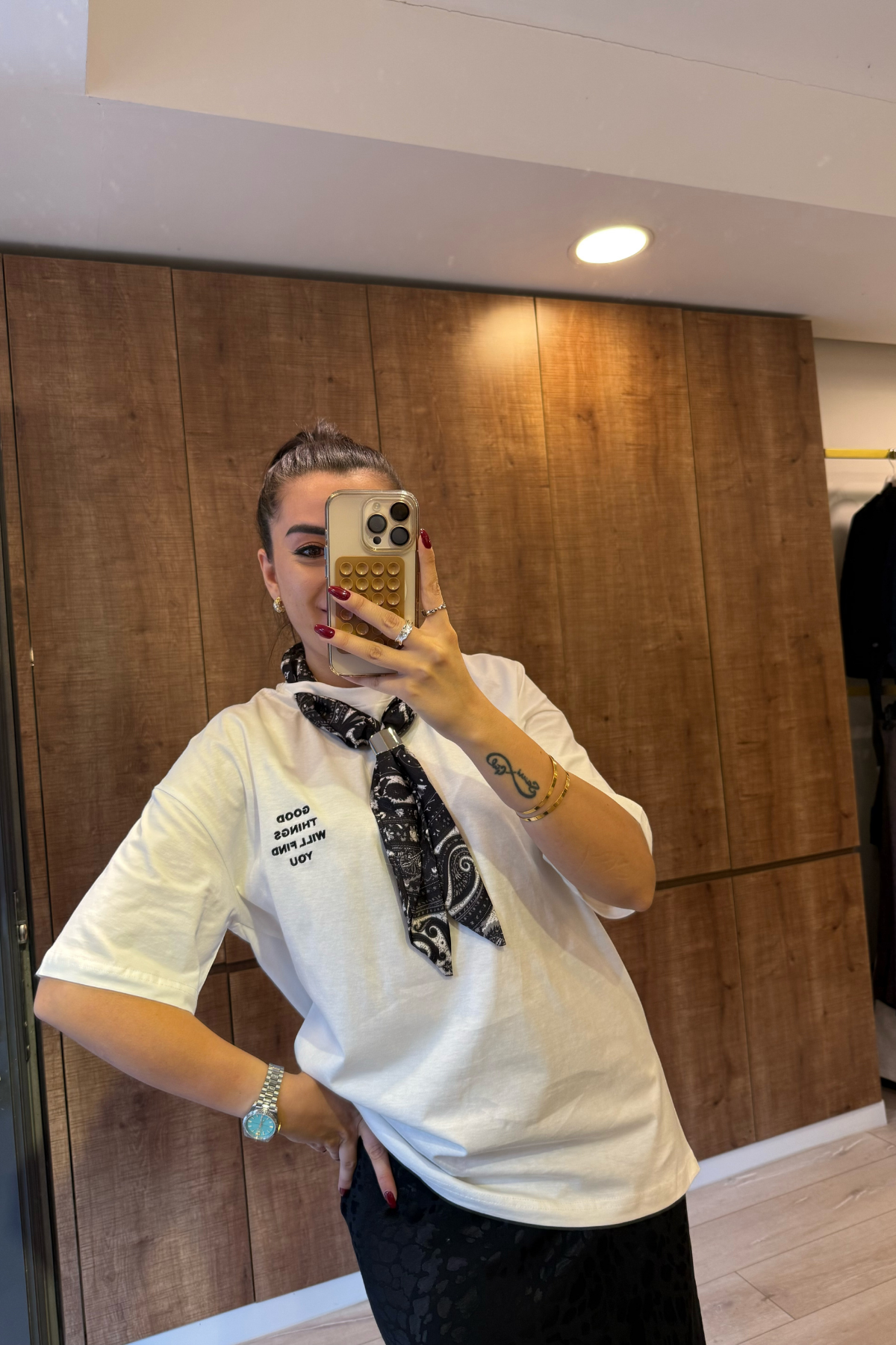 Quzu yeni sezon fularlı pamuk oversize tişört